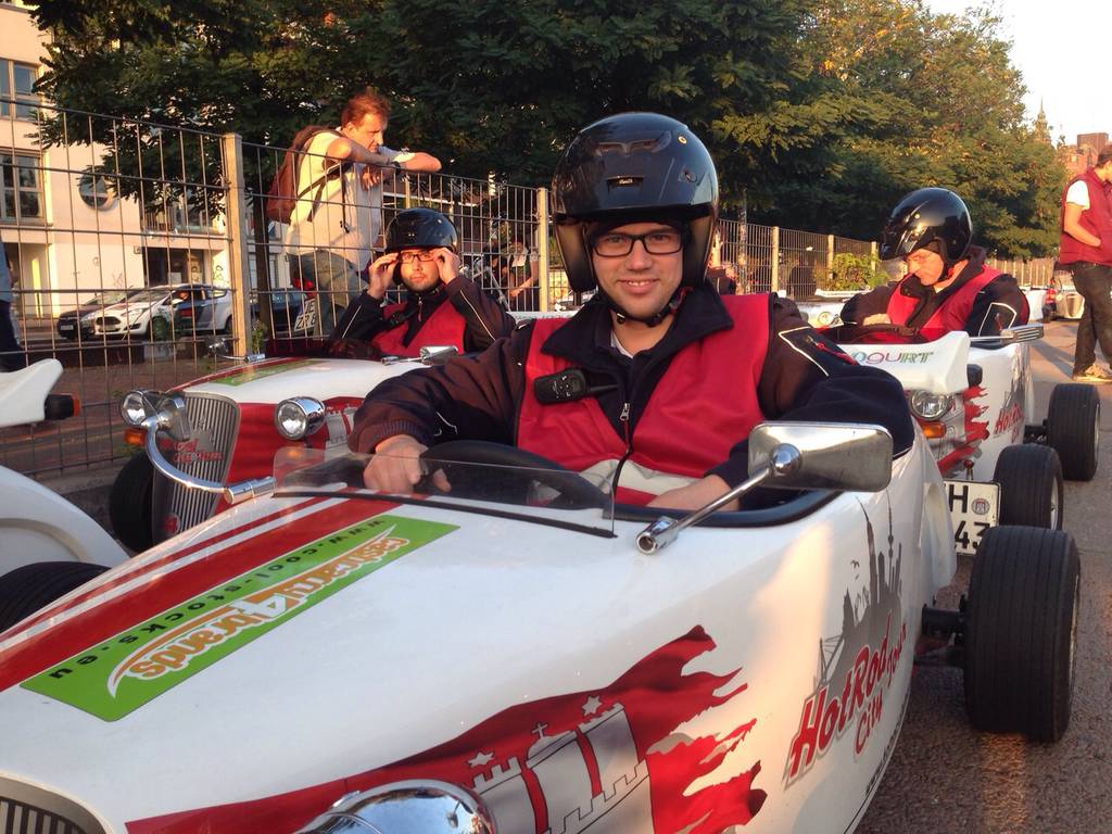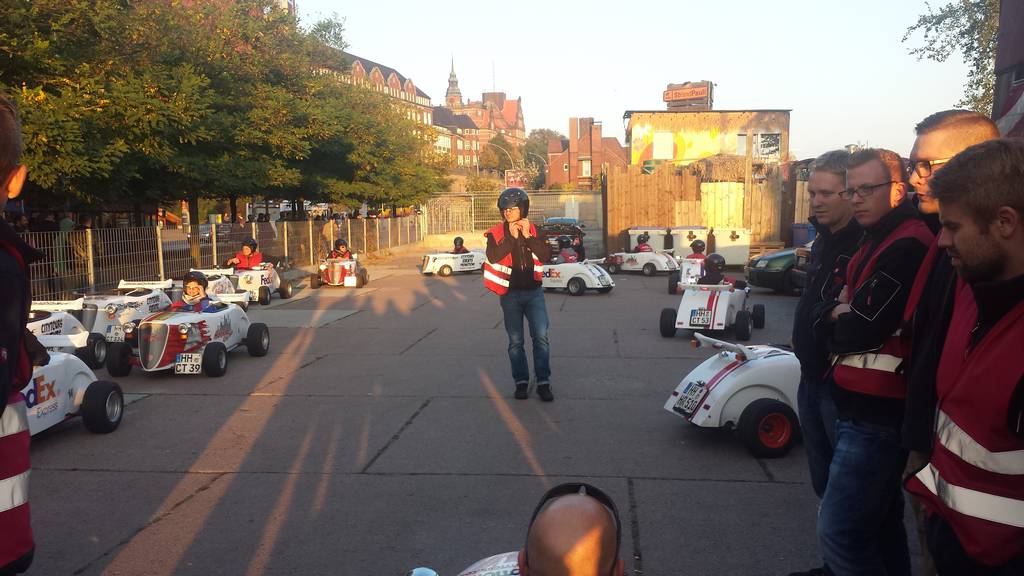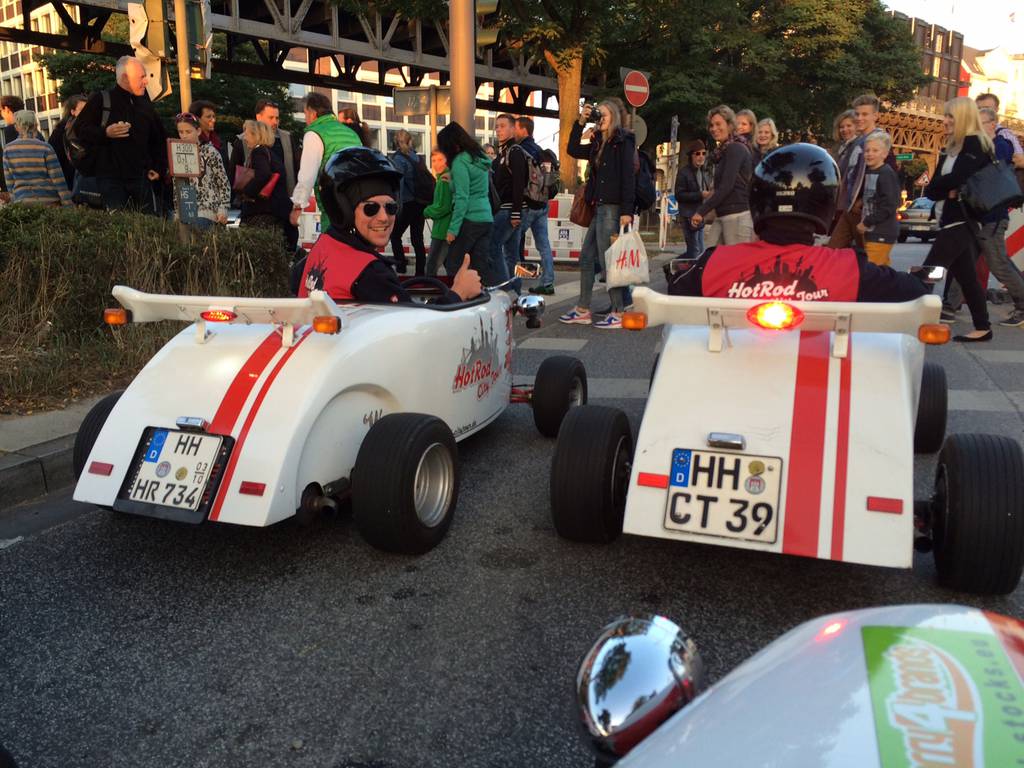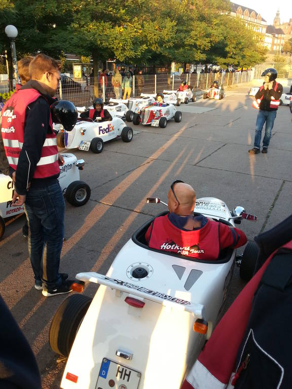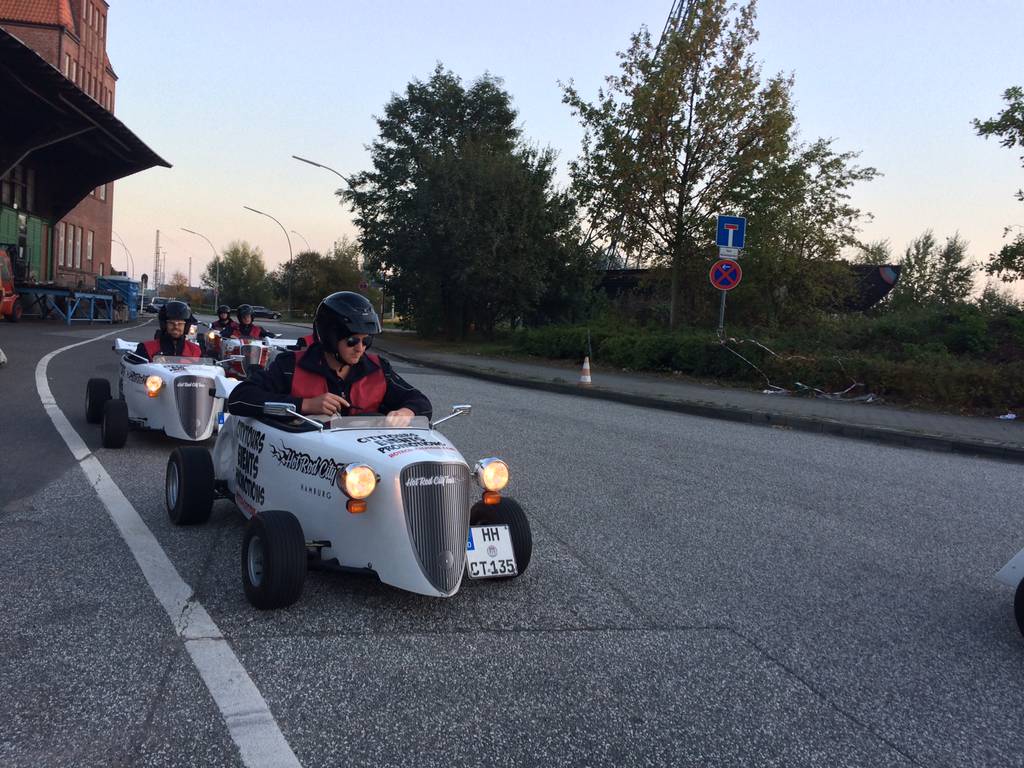Der zweite Tag begann mit einem Besuch der Hamburger Feuerwache „Berliner Tor“. Gezeigt wurden die Fahrzeuge, insbesondere der große Einsatzleit-Bus. Obligatorisch durfte in Hamburg eine große Hafenrundfahrt nicht fehlen. Zu bestaunen gab es einen Containerterminal mit großen Frachtschiffen, Schleusen, sowie die Speicherstadt von der Wasserseite. Am Abend gab es eine spontane Stadtrundfahrt mit kleinen „Hot-Rods“. In umgebauten Go-Karts mit Straßenzulassung wurde mit bis zu 85km/h die Stadt erkundet. Für viele war dies das Highlight des Wochenendes.
