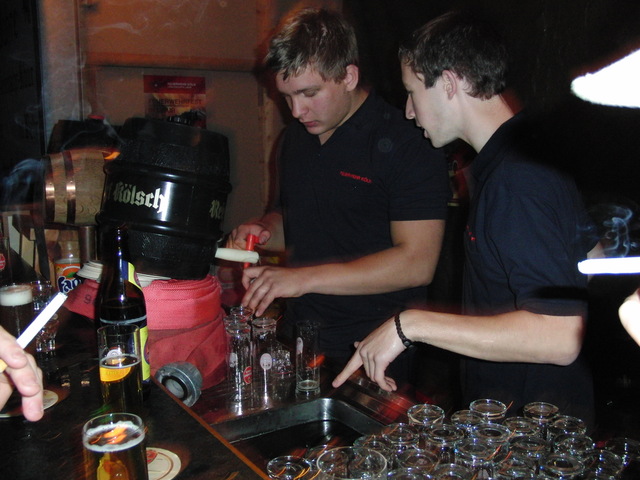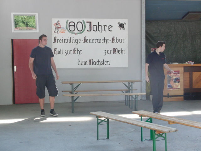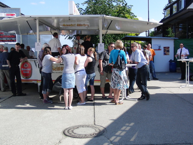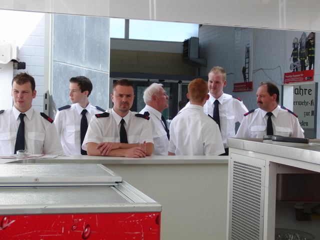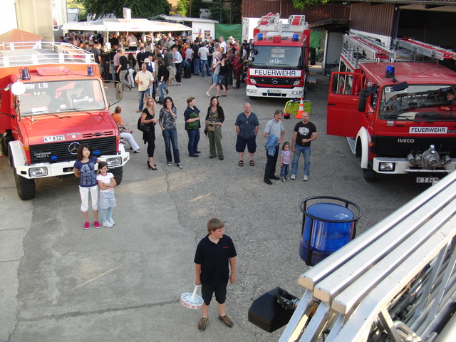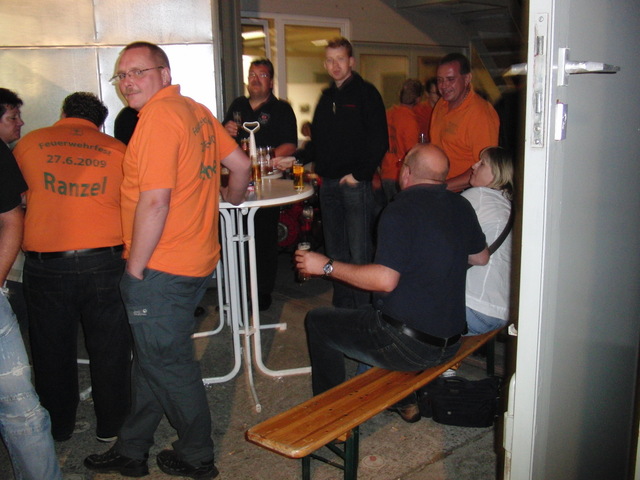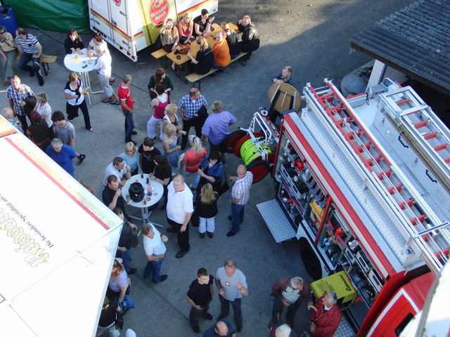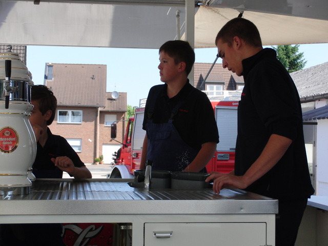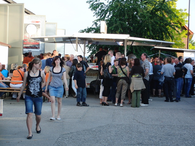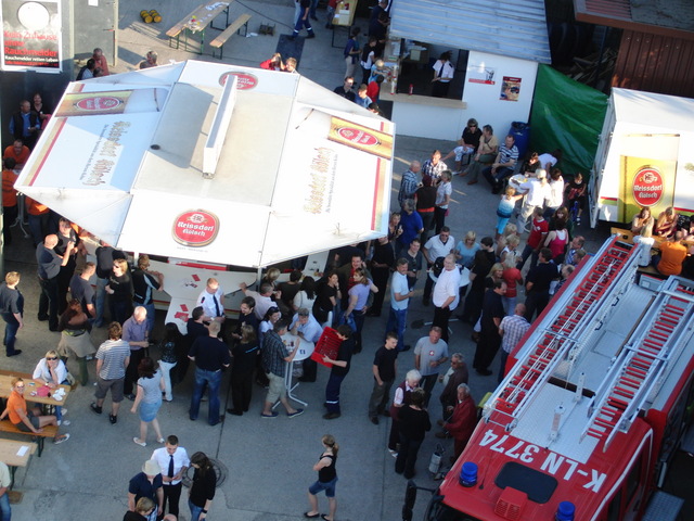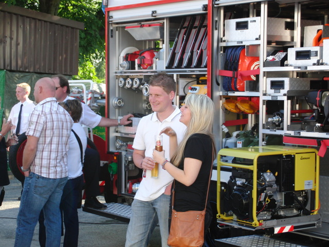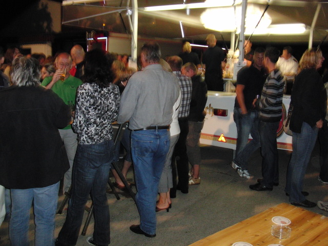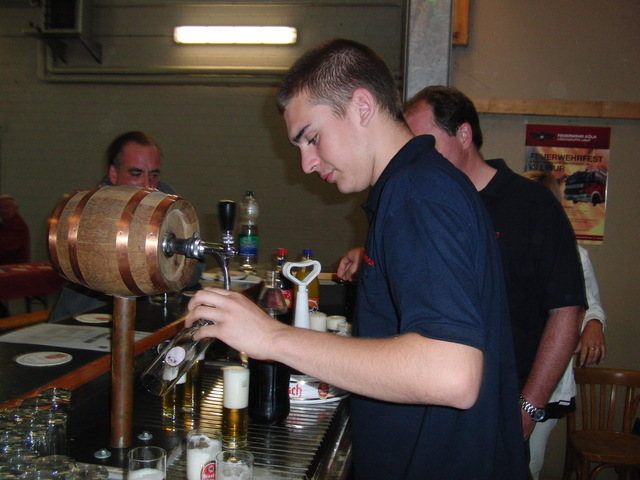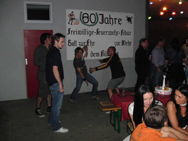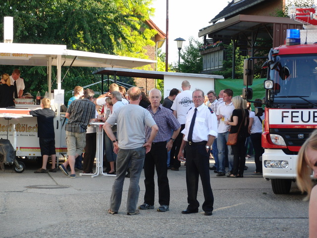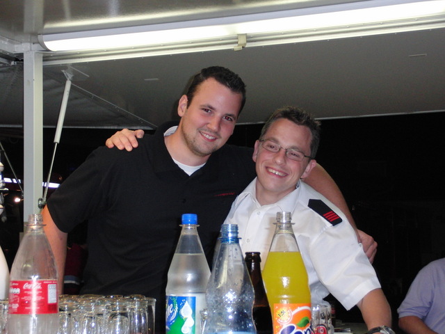 Dank vorausschauender Planung konnten wir eine zweite, vorbereitete Theke in der Fahrzeughalle zum Zapfen öffnen, sodass die Getränke wieder reibungslos unter die Gäste gebracht werden konnten. Viele Kameraden der benachbarten Löschgruppen und der rege Zustrom an Gästen aus Libur und Umgebung führten zeitweise zu einer drohenden Verknappung der Biervorräte, die sich aber glücklicherweise schnell abwenden ließ. Lediglich das Grillgut war am späten Abend dann ausverkauft. Im Verlauf des Abends kam dann die bekannt gute Stimmung auf unseren Feuerwehrfesten voll zum tragen: Die Gäste und Feuerwehrkollegen feierten mit uns bis in die frühen Morgenstunden.