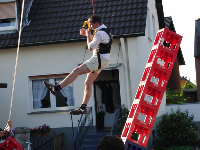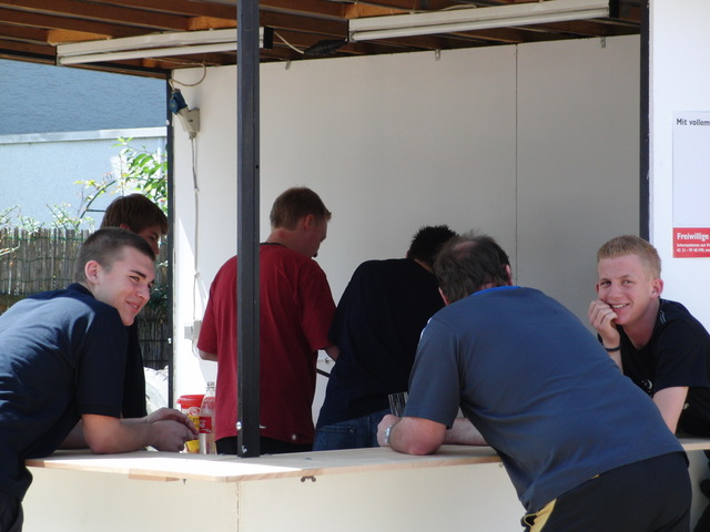 Unter strahlend blauem Himmel und bei angenehmen Temperaturen hatten die Kinder sichtlichen Spaß beim Toben auf der Hüpfburg, beim Kistenklettern und Wasser spritzen. Die Erwachsenen vergnügten sich derweil rund um die Bierbude, die gegen Abend dann an die schanktechnische Leistungsgrenze kam.