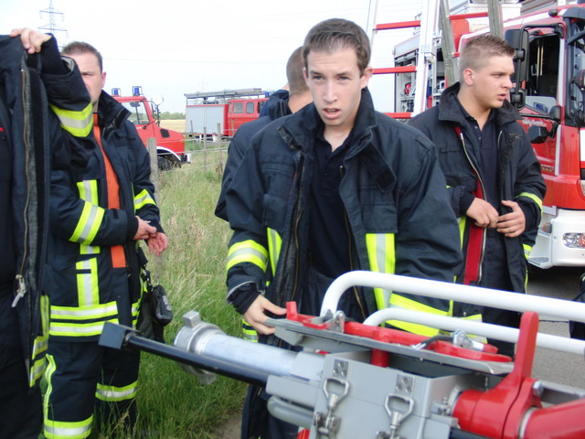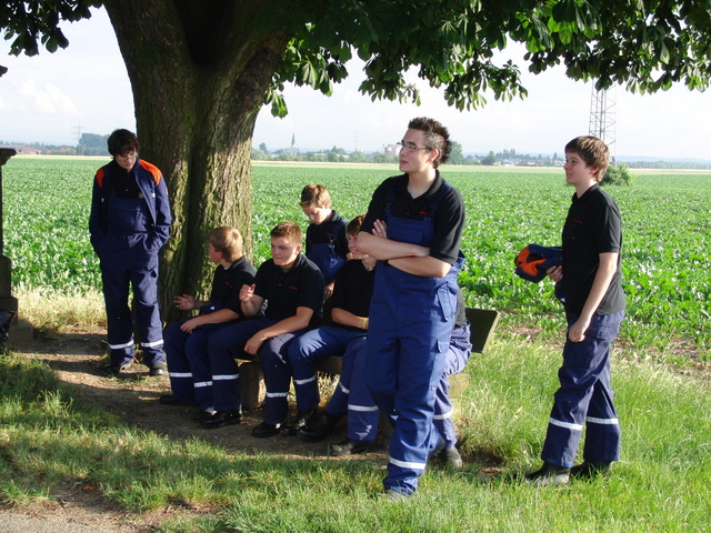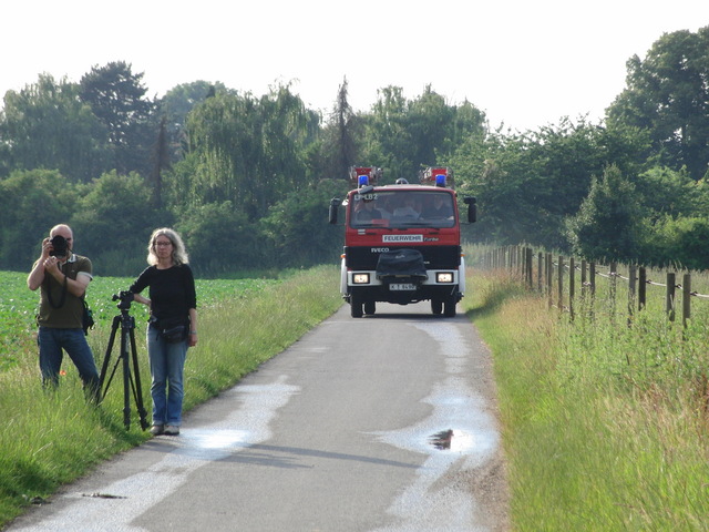 Von der Alters- und Ehrenabteilung bis zur Jugendfeuerwehr waren alle Mitglieder der Löschgruppe gekommen, um auf dem Foto dabei zu sein. Nach der Aufstellung der Fahrzeuge wurden wir dann so lange von Petra Hartmann ins rechte Licht gerückt, bis alles passte. Bei knapp 25 Grad Außentemperatur an diesem herrlich sonnigen Tag kamen vor allem die Aktiven in der Feuerwehr-Schutzkleidung ordentlich ins Schwitzen.