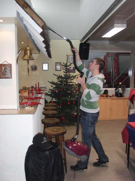 In gewisser Weise ist eine Freiwillige Feuerwehr auch nichts anderes als ein „normaler“ Verein. Auch bei uns gibt es daher etwas wie ein Vereinsleben – und dazu gehört in der Vorweihnachtszeit eben auch eine Weihnachtsfeier. Wir fanden uns daher am vergangenen Samstag aus dem vorgenannten Anlass im Gerätehaus ein, um dem Feuerwehrjahr einen gemütlichen Abschluss zu geben.Auch wenn die eigentliche Feier erst um 20 Uhr beginnen sollte, gab es schon Tage vorher genug zu tun. Unsere Räumlichkeiten wurden gründlich durchgewischt und der Weihnachtsbaum wurde aufgestellt. Die restlichen Vorbereitungen fanden dann am Samstag statt: Tische umstellen und die Tische für das Buffet bereitstellen, die Theke bestücken, Getränke abholen und und und. Zwischen 12 und 14 Uhr wirbelten so noch etliche fleißige Helfer durch unsere Hallen.