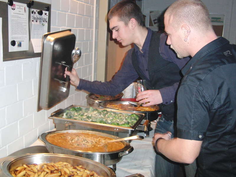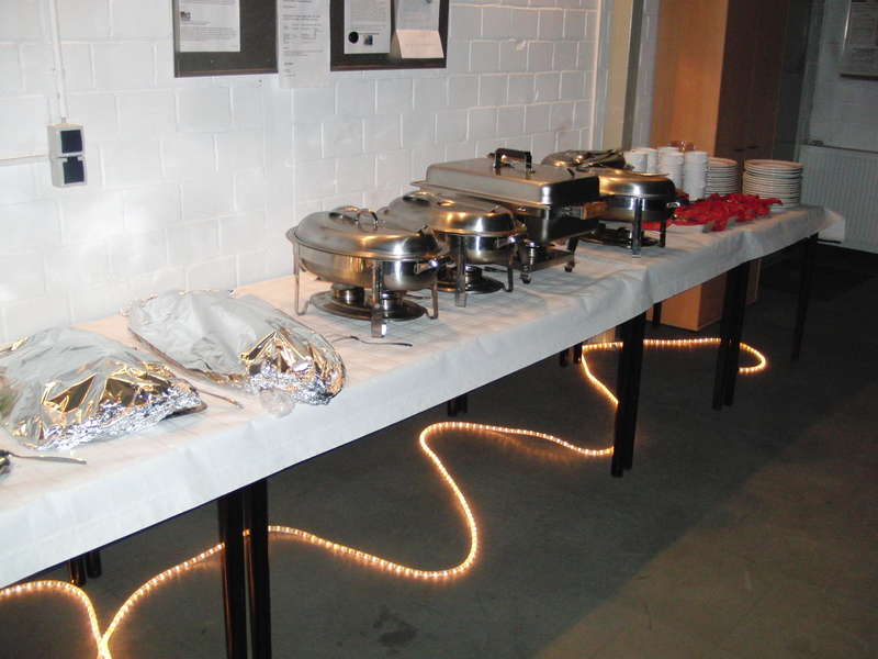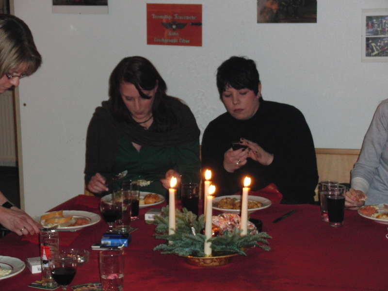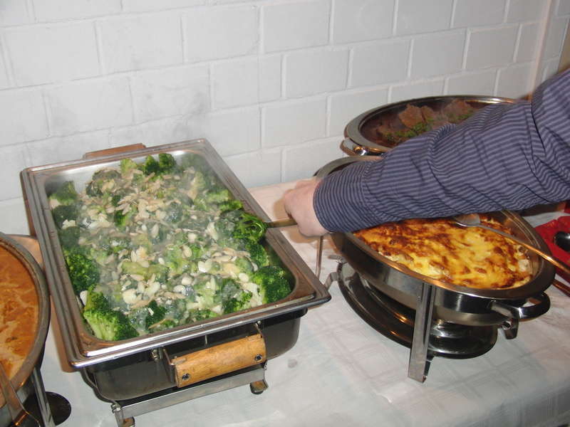 Auf das im Anschluss an die „Bescherung“ eröffnete Buffet herrschte schnell ein reger Andrang, denn die vielfältige Auswahl machte schon bei der Betrachtung der von der Metzgerei Küster aus Wahn gelieferten Speisen Appetit. Auch sonst konnte das Buffet überzeugen: Eine gute Auswahl, leckere Produkte und gut dimensionierte Portionen führten durchweg zu guten Kritiken.