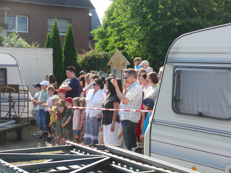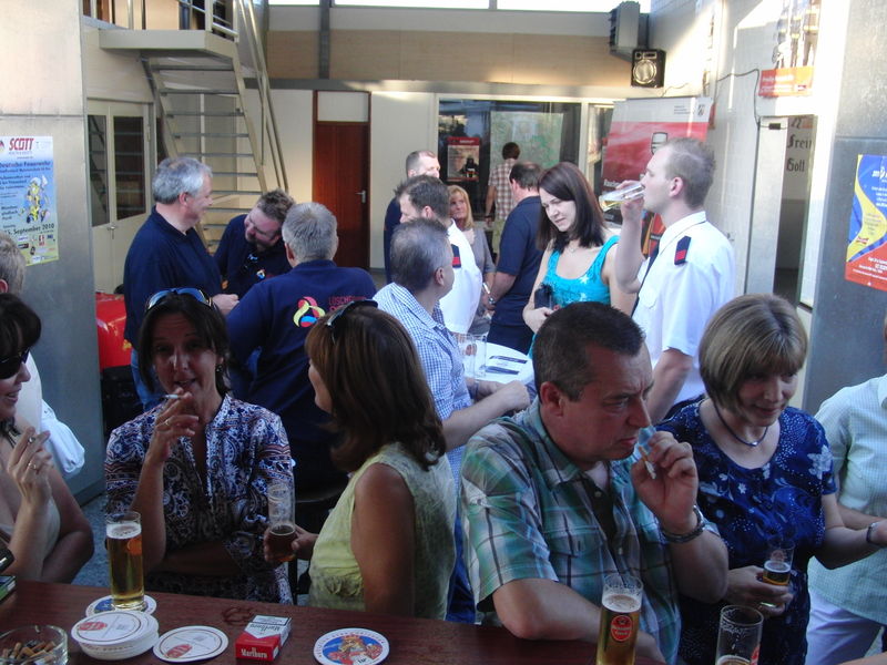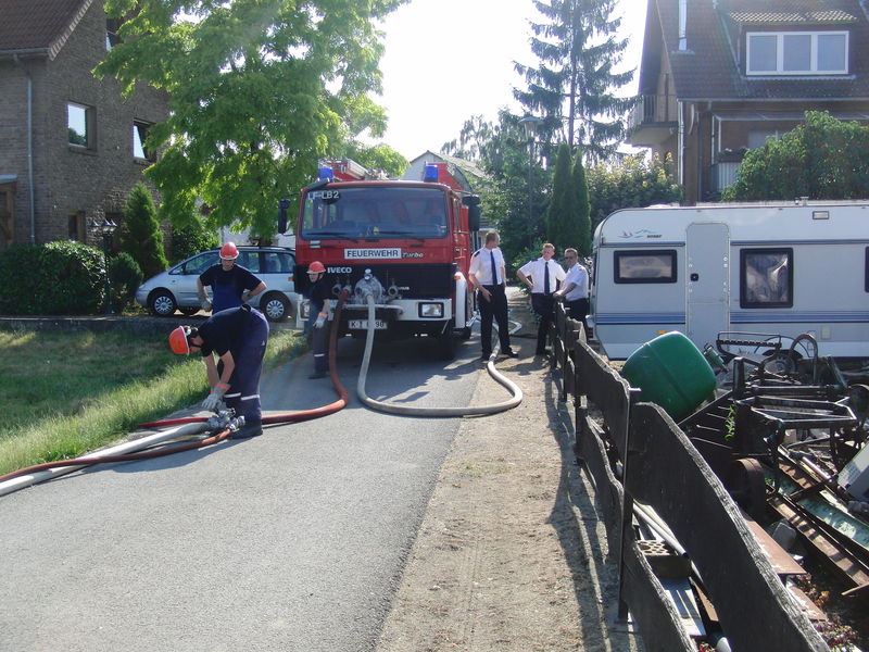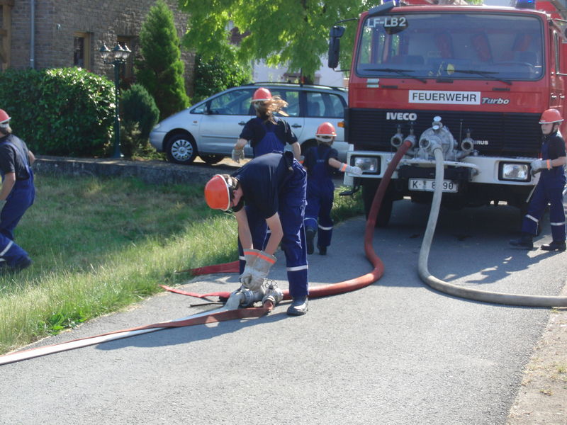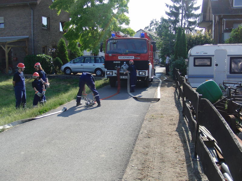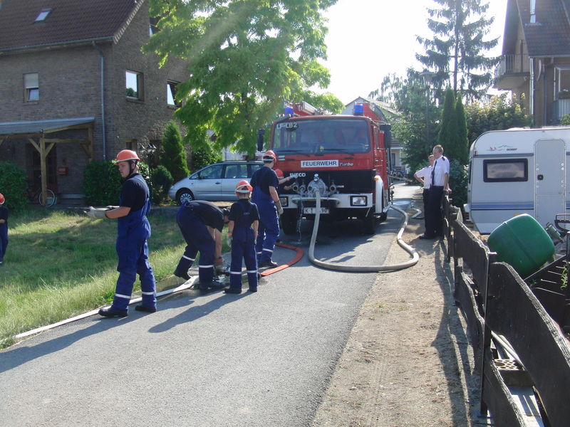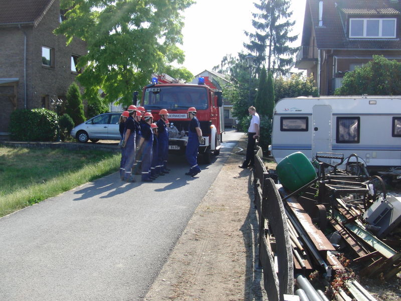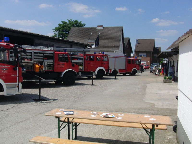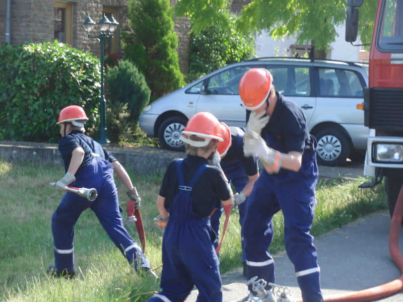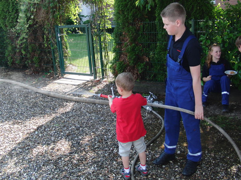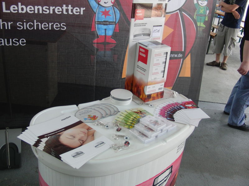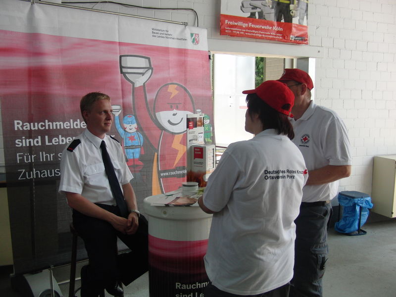 Fanden reißenden Absatz: Die Kinderfinder-Aufkleber der Arbeitsgemeinschaft Kölner WohnungsunternehmenIm Verlauf des Nachmittags rückte unsere Jugendfeuerwehr zu einer Schauübung aus, die von den anwesenden Gästen aufmerksam beobachtet wurde. Da zeigte sich auch, dass sich unsere Jugendarbeit und das ständige Werben für neue Mitglieder lohnt: Beim nächsten Übungsdienst der Jugendfeuerwehr wollen einige interessierte Nachwuchs-Brandbekämpfer vorbeikommen, und sich im Detail über eine Mitgliedschaft in der Jugendfeuerwehr informieren.