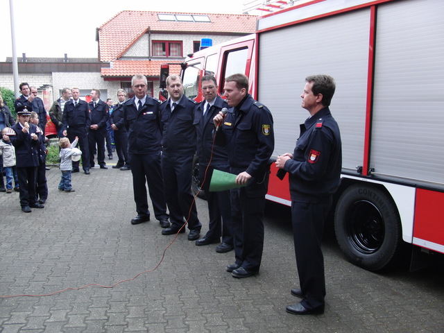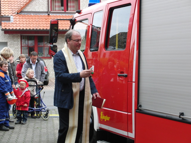 Das Fahrzeug wurde durch Herrn Brandrat Röhrle von der Feuerwehr Köln offiziell an den Löschgruppenführer der Freiwilligen Feuerwehr Porz-Langel übergeben und anschließend durch den Gemeinde-Pfarrer eingesegnet.