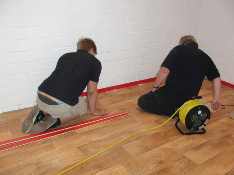 Von Kopf bis Fuß alles neu: Nach dem Einbau der Holzdecke wird hier gerade der neue Fußbodenbelag verlegt.