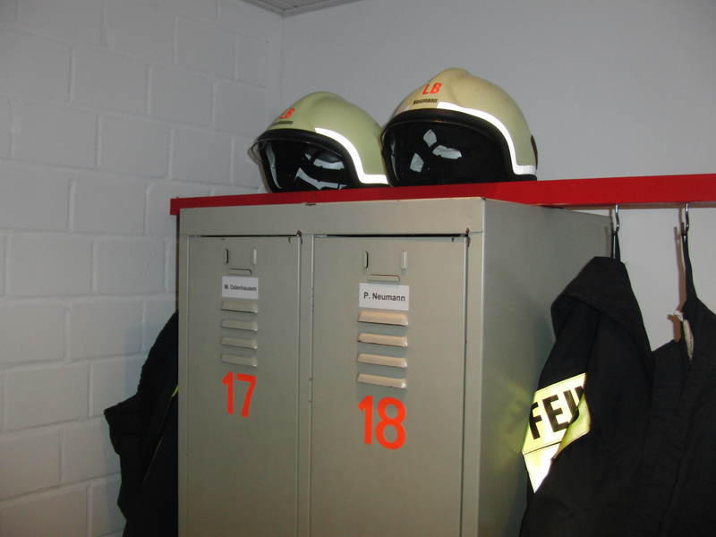„Alles neu macht der Mai“ sagt ein altes Sprichwort. Im Prinzip gilt das auch für unsere neue Umkleide, auch wenn die Arbeiten daran schon mehr als einen Monat vorher begonnen haben. Die Umkleide ist, um auch den nicht so feuerfesten Bürgern einen Einblick zu geben, ein relativ wichtiger Ort für eine Freiwillige Feuerwehr. Anders als bei der Berufsfeuerwehr, wo die Einsatzkleidung der diensthabenden Schicht in der Nähe der Fahrzeuge deponiert ist, fängt der Einsatz für die freiwilligen Kräfte an diesem zentralen Ort an. Während die Kameraden nach einer Alarmierung in die Umkleide strömen, werden dort schon oft wichtige Absprachen getroffen. Wer ist schon anwesend? Wer wird das Einsatzfahrzeug fahren, wer die Gruppe führen? Wer besetzt den Angriffstrupp? Nicht selten werden dort Informationen zur Anfahrt zur Einsatzstelle ausgetauscht ... oder es wird auch mal geflucht, dass der Melder zu nachtschlafender Zeit ausgelöst hat – auch das soll es geben.
