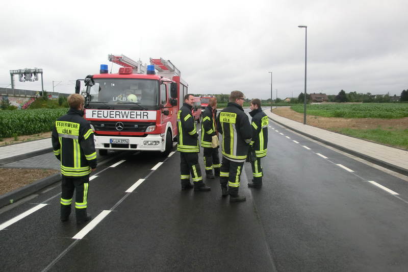 Das war für uns der Anlass, dort einmal vorbeizuschauen. Neben der Verlängerung der Straße „Am Bahnhof“, die nun bis auf die Frankfurter Straße durchgezogen wurde, könnten für uns zukünftig Einsätze in den Straßen „Zum alten Paulshof“, „Kemenatenweg“, „Am Zinnenkranz“, und „Unter der Pechnase“ sowie im „Fallgatterweg“ anfallen. Mit diesen neuen Informationen im Gepäck erkundeten wir dann noch ein paar weitere Ecken in Wahn, in denen sich momentan einiges bewegt. Der restliche Übungsabend wurde dann zum Gespräch genutzt, wo natürlich auch über die am Samstag anstehende Übung unseres Gefahrenabwehrbereiches gefachsimpelt wurde.